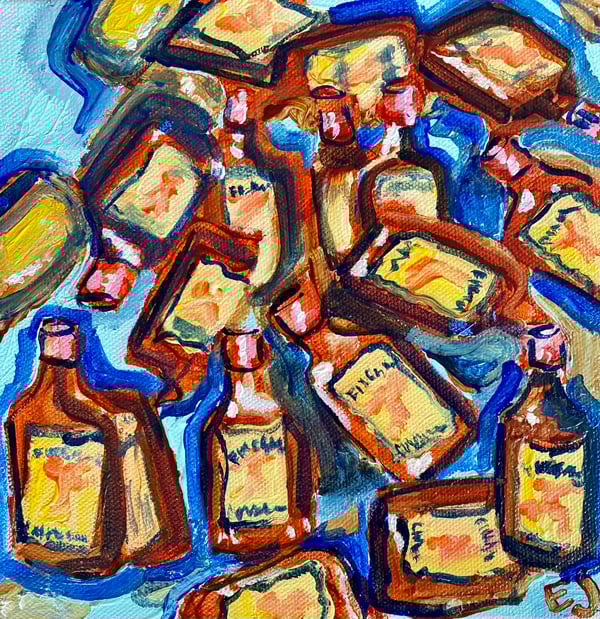 The “Vicious Cycle” series explores visual representations of relentless shapes and claustrophobic moments juxtaposed with created space on canvas. In creating this body of work, my process oscillated between extreme focus/obsession to pure joy/relief. This small series aims to empathetically mimic those tight/helpless circles we have found ourselves in as of late but also aims to provide hope for those spacious moments of joy and relief that surely will come.
