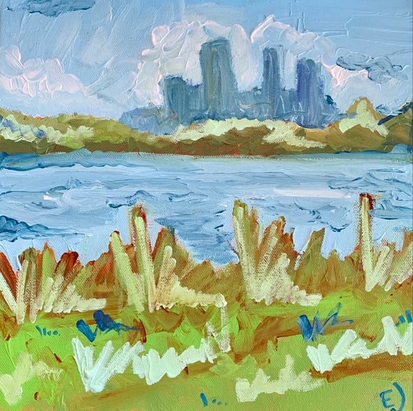 36” x 36” acrylic painting on stretched canvas with a 2 3/8” profile.